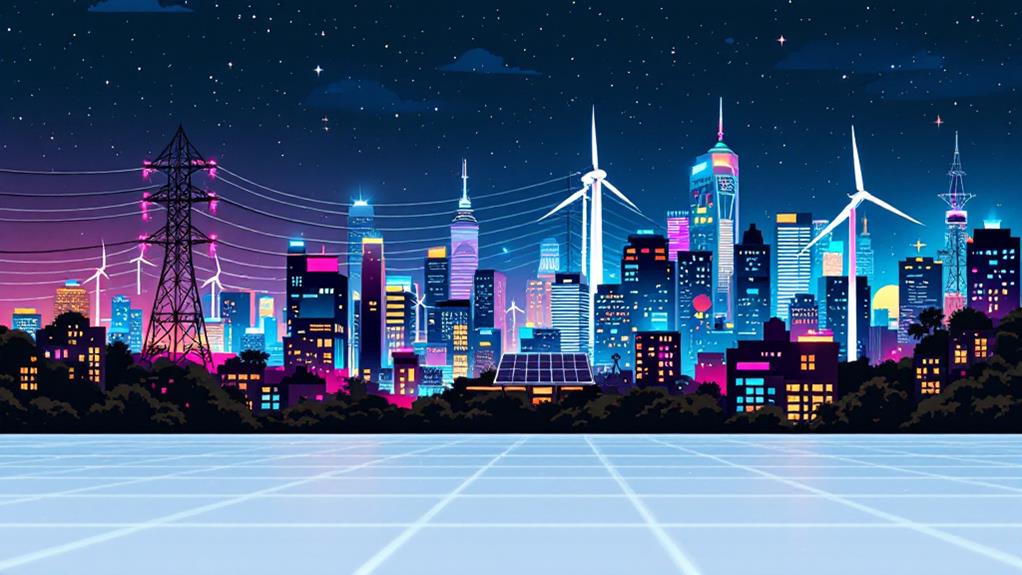 Smart city planning plays a pivotal role in these efforts. You'll find that modern urban development incorporates energy-efficient designs and renewable energy sources from the ground up. This approach guarantees that growing populations have access to sustainable power while minimizing environmental impact.